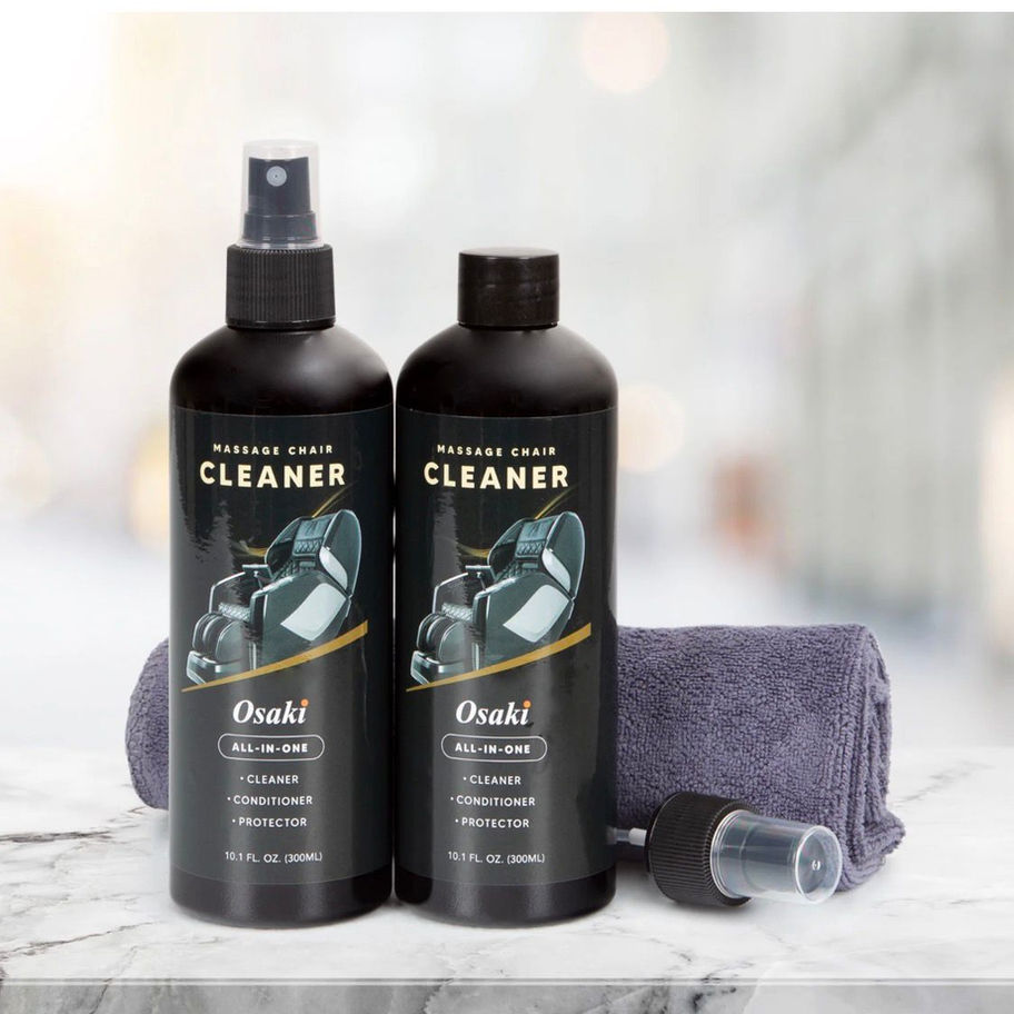 The Massage Chair Cleaner Set is specially formulated to gently clean, protect, and maintain massage chair upholstery especially leather and synthetic leather surfaces. Made with simple, easy-to-understand ingredients, it removes dirt, oils, and everyday buildup without damaging or drying out the material.